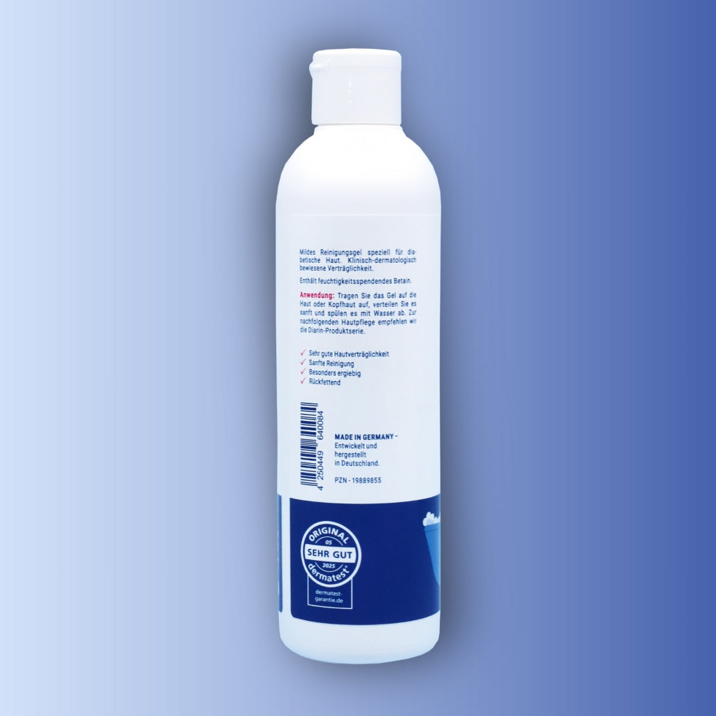 The skin of many children with diabetes reacts sensitively to frequent washing. That's why we developed Diarin Shower Gel KIDS – an especially gentle 2-in-1 body and hair care product, tailored precisely to the needs of sensitive children's skin. The gentle formula contains no unnecessary additives and cleanses skin and hair particularly gently, significantly reducing the risk of skin irritation.